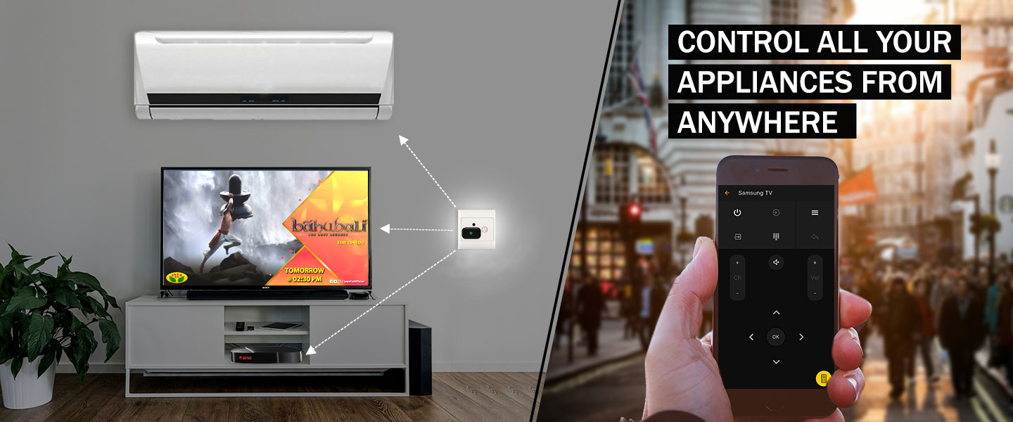 A universal remote and is a replaceable product for IR remote controlled appliances. Place it anywhere in the room and control your appliances. The four IR blasters implanted cover 360-degree radius of your room thereby easing the appliance control. Innovative IR LED arrangement to cover an entire room’s radius of 20 feet. This kind of arrangement helps to control all IR appliances in a room no matter where you place IOTOMATIC Uni Smart Remote. Single All-In-One remote for various devices like TV, AC, Set-top box, Projector etc., You simply need to connect it to any USB adaptor, enable your local Wi-Fi network to control your appliances.