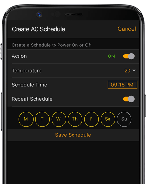 Turn on/off your AC by just setting all the schedules in the app.