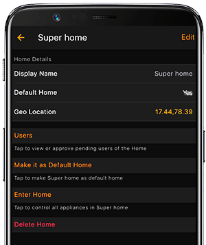 Lock your home on a single tap. Locking home enables IOTO Motion Sensors to detect and notifies any suspicious motion in the home and any switch activities in the home are also notified.