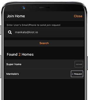 Request a user to join home. Once accepted, control all the devices in the home.
