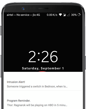 Receive notifications on reminders, intrusion, join home events etc.