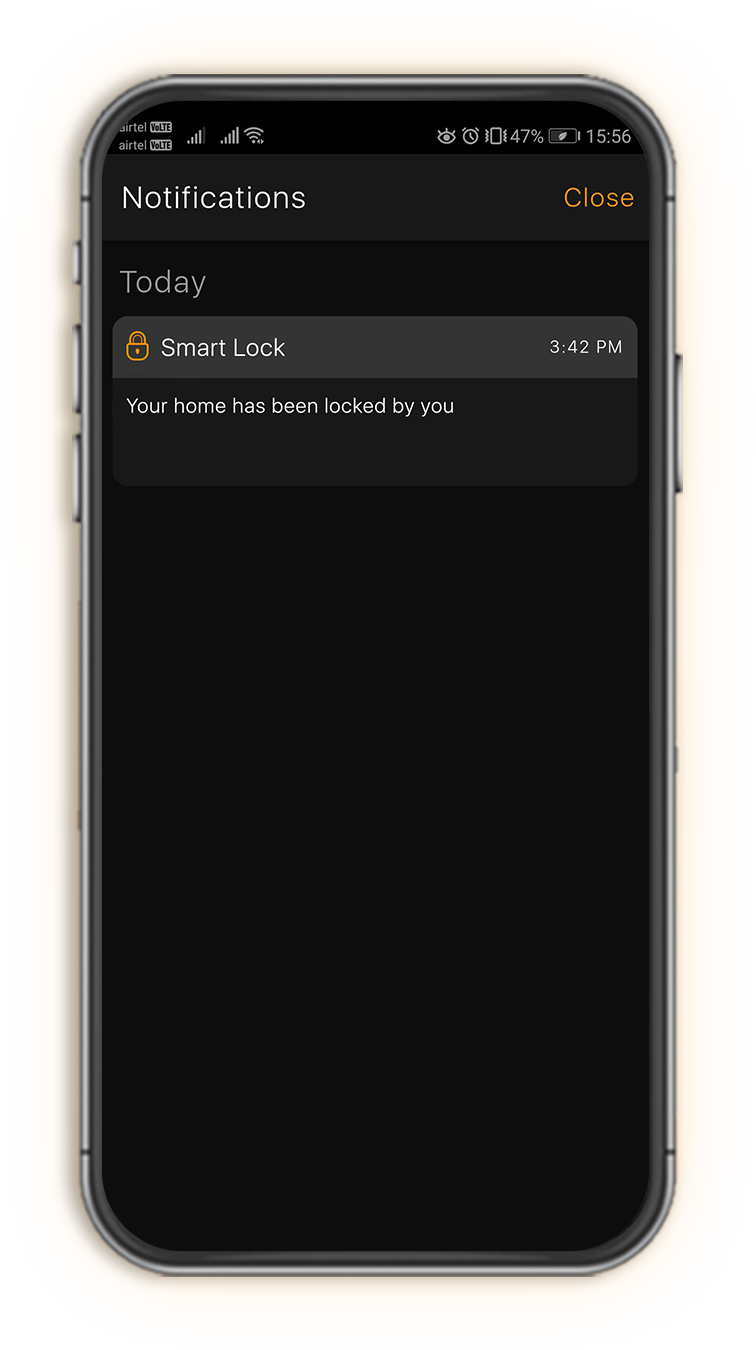 With IOTOMATICS App, you can monitor your home security from anywhere in the world. Get real time notifications whenever the door is locked or unlocked.